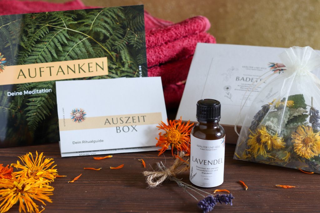 Die Auszeit Box enthält eine ausführliche Ritualanleitung und folgende Zutaten: