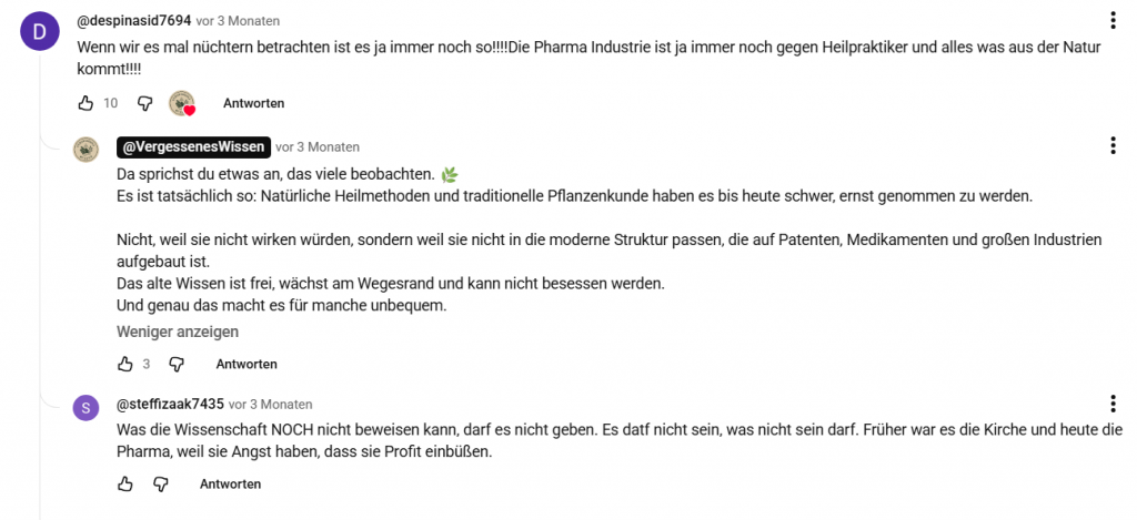 Diese Haltung ist problematisch. Nicht nur, weil sich das mit Verschwörungstheorien, wie dem „verbrannten Hexenwissen“ oder der „bösen, bösen Kirche“ mischt, sondern weil dadurch genau das passiert, was die Menschen in den Kommentaren fürchten: Kräuterwissen wird nicht ernst genommen.