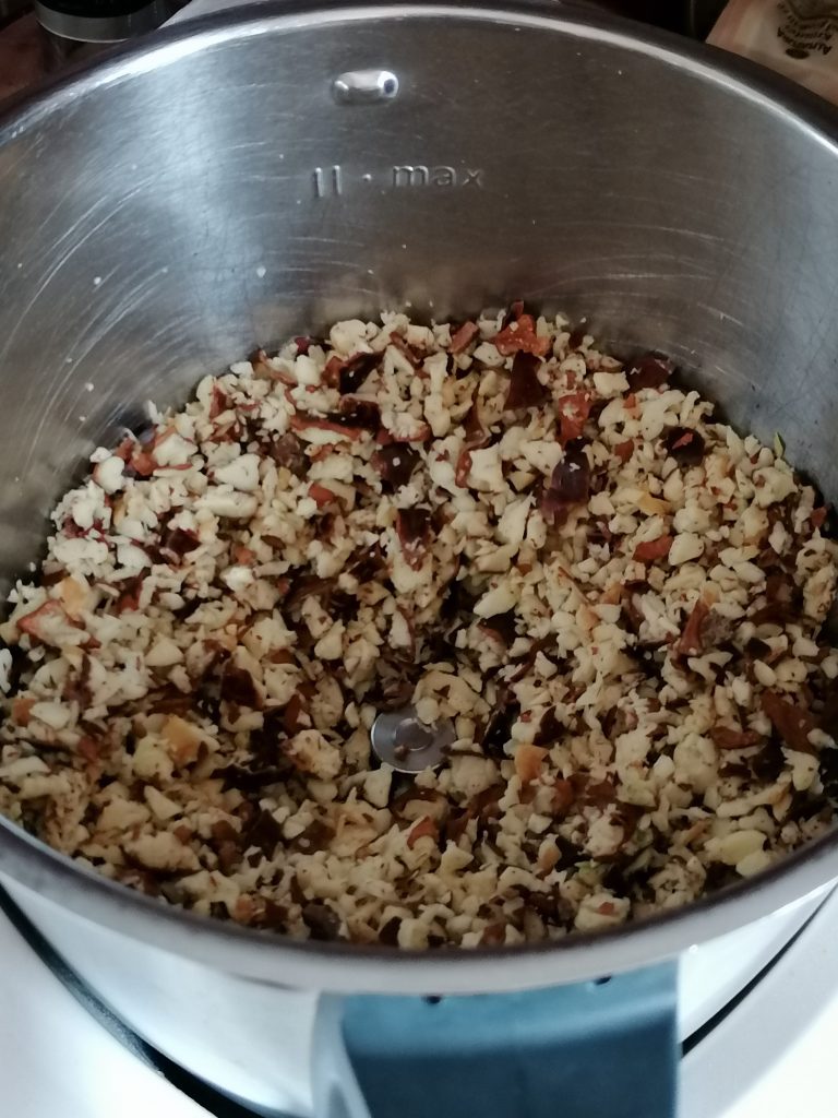 Die zerkleinerten Kastanien im Mixer