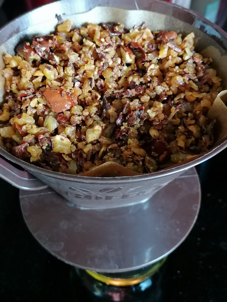 Dann filtere über einem Kaffeefilter ab.