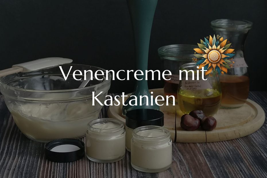 Venenschwäche kann sich als Krampfadern oder Hämorrhoiden zeigen. Die Rosskastanie (Aesculus hippocastanum) kann helfen, die Venen zu kräftigen und den Blutfluss zu verbessern. Die Venencreme ist eine Verbesserung meiner Kastanien-Schüttel-Lotion.